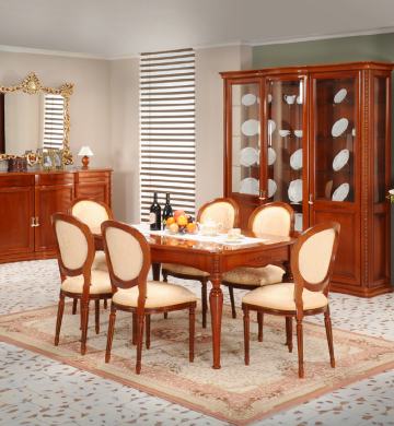 Scaunul Camelia este realizat din lemn masiv, cu sezut si spatar tapitat pentru un confort sporit. Forma ergonomica si liniile clasice il fac potrivit atat pentru mesele festive, cat si pentru utilizarea zilnica.