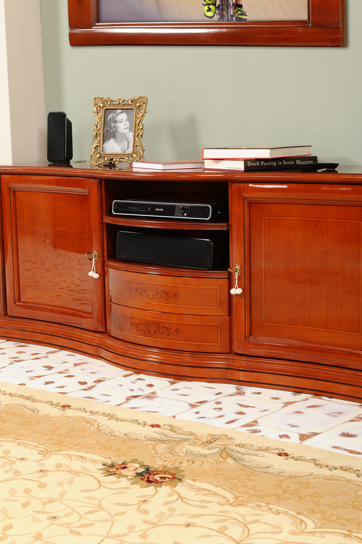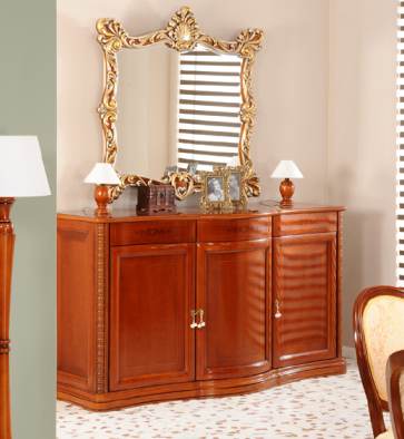 Servanta Camelia este o piesa centrala in amenajarea unei sufragerii clasice. Realizata din lemn masiv, aceasta dispune de trei usi si trei sertare, oferind spatiu amplu pentru depozitarea veselei, textilelor sau accesoriilor de dining.